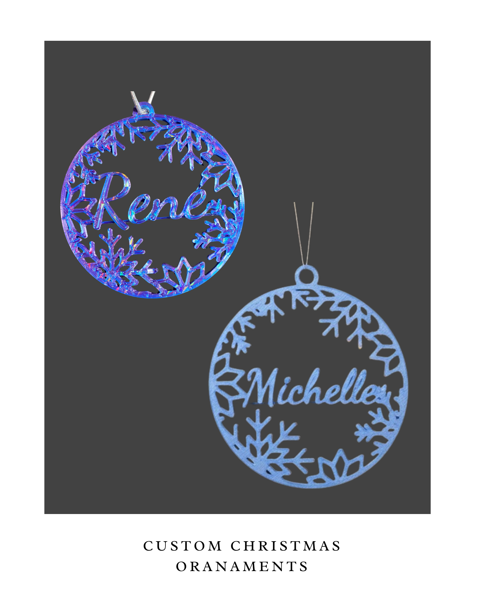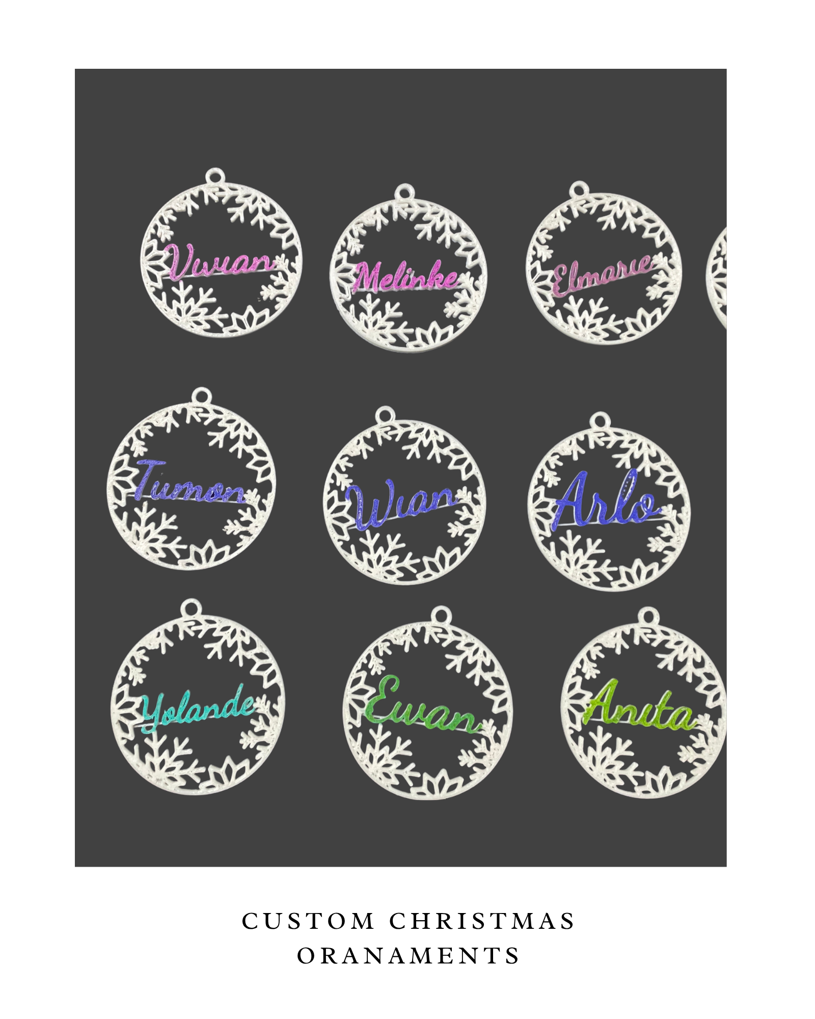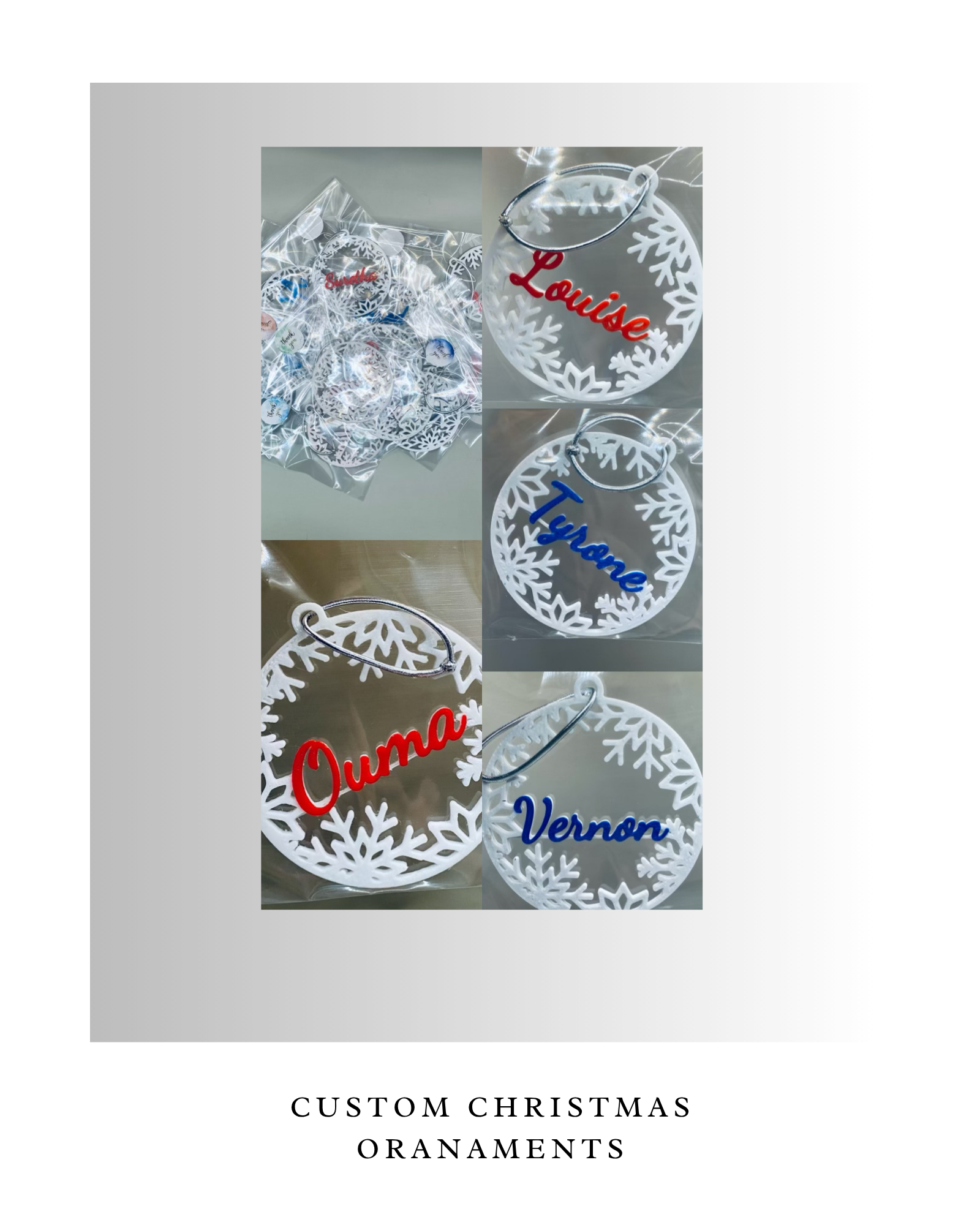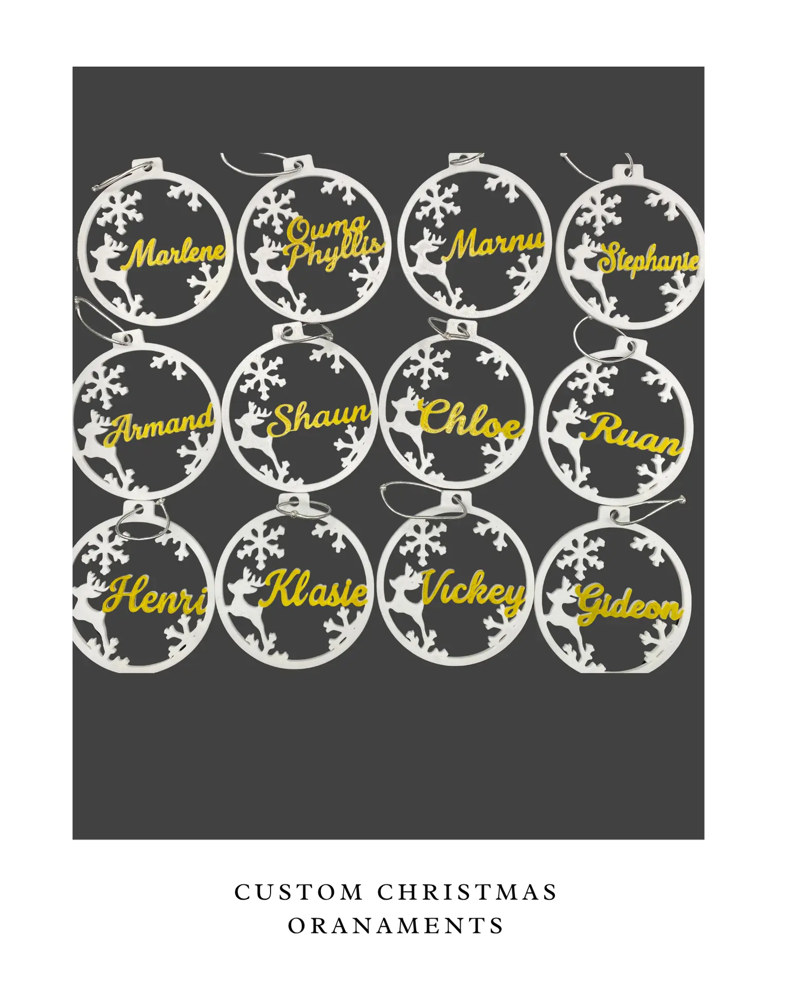 - 4 ornaments, each with a different name